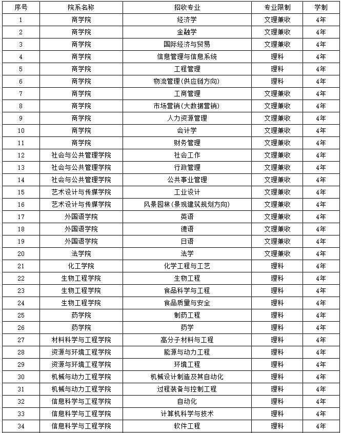 注:1. 学校参照由教育部、卫生部、中国残疾人联合会印发的《普通高等学校招生体检工作指导意见》及有关补充规定,制定学校各专业的体检限制要求。具体要求详见学校本科招生网发布的《招生专业(类)及体检限制》。